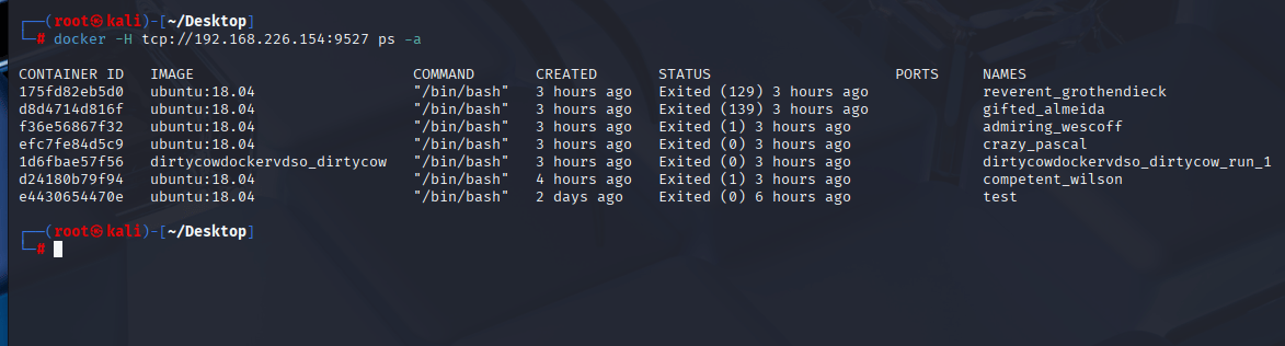 进一步操作:攻击者可执行 Docker 命令查看所有容器: