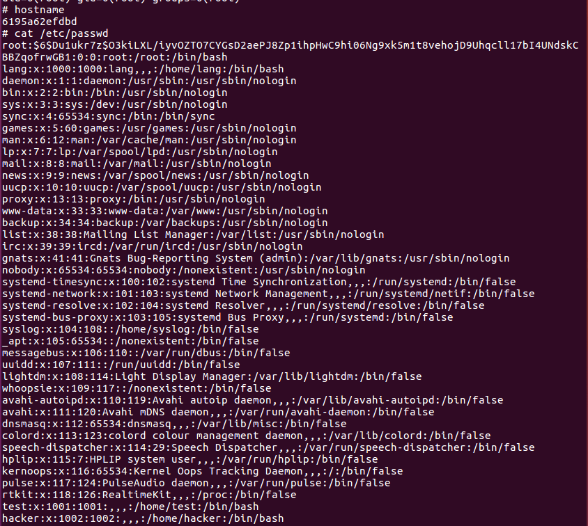 root、lang、hacker等),部分内容示例:root:$6$Du1ukr7z$O3kiLXL/iyvOZTO7CYGsD2aePJ8Zp1ihpHwC9hi06Ng9xk5m1t8vehojD9Uhqcll17bI4UNdskCBBZqofrwGB1:0:0:root:/root:/bin/bash lang:x:1000:1000:lang,,,:/home/lang:/bin/bash hacker:x:1002:1002:,,,:/home/hacker:/bin/bash