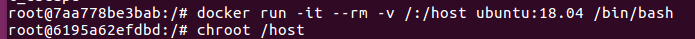 /挂载到容器/host的新容器:docker run -it --rm -v /:/host ubuntu:18.04 /bin/bash-
